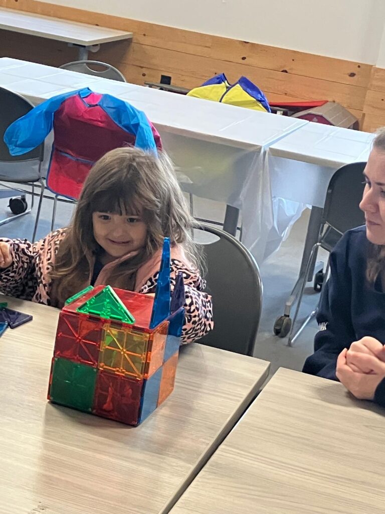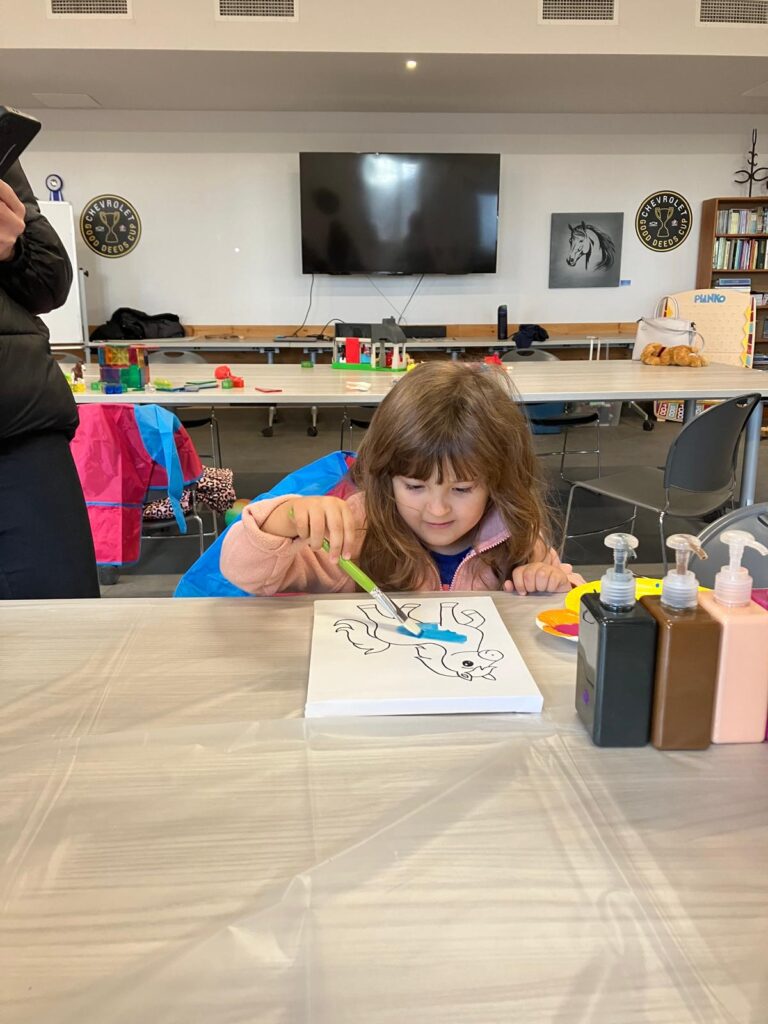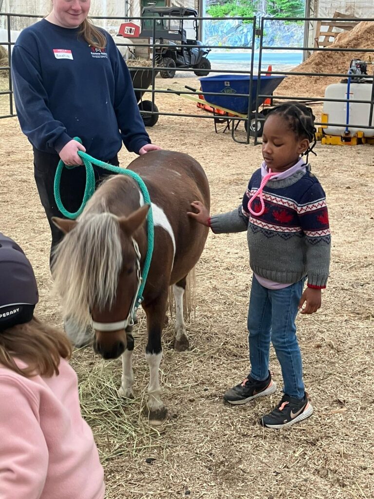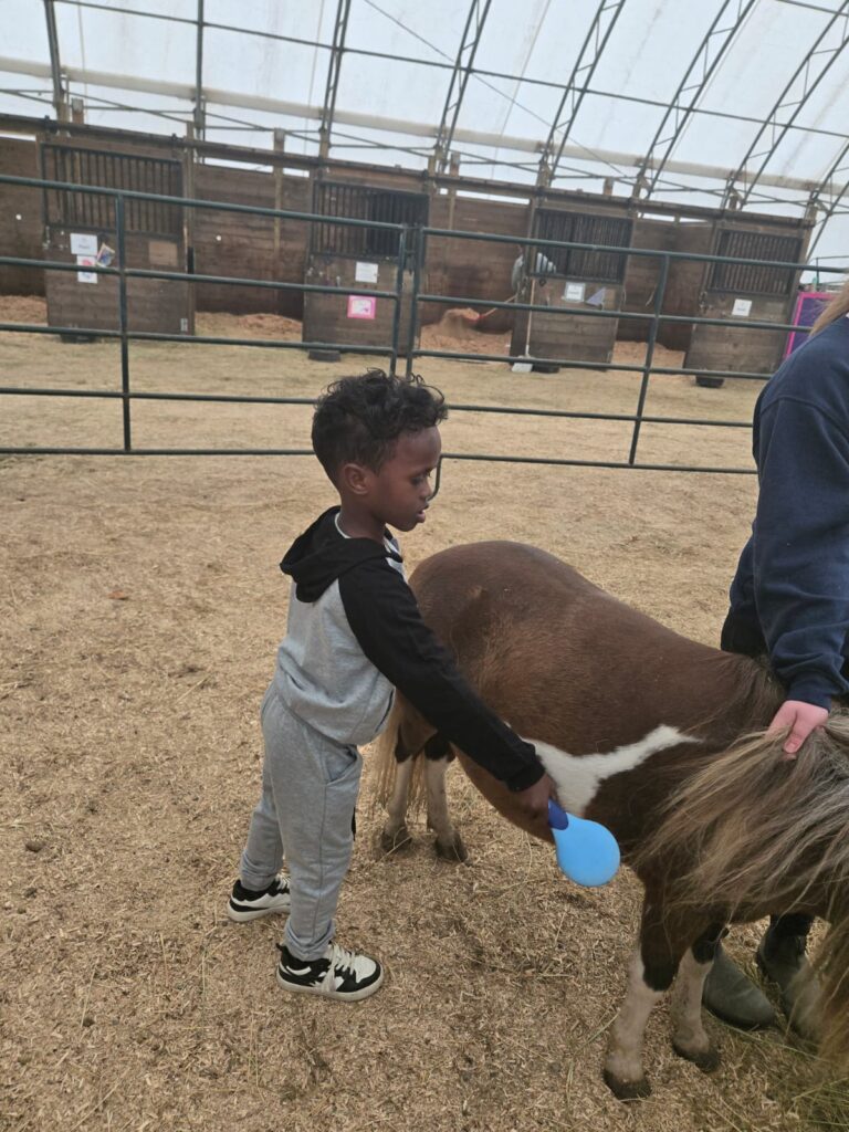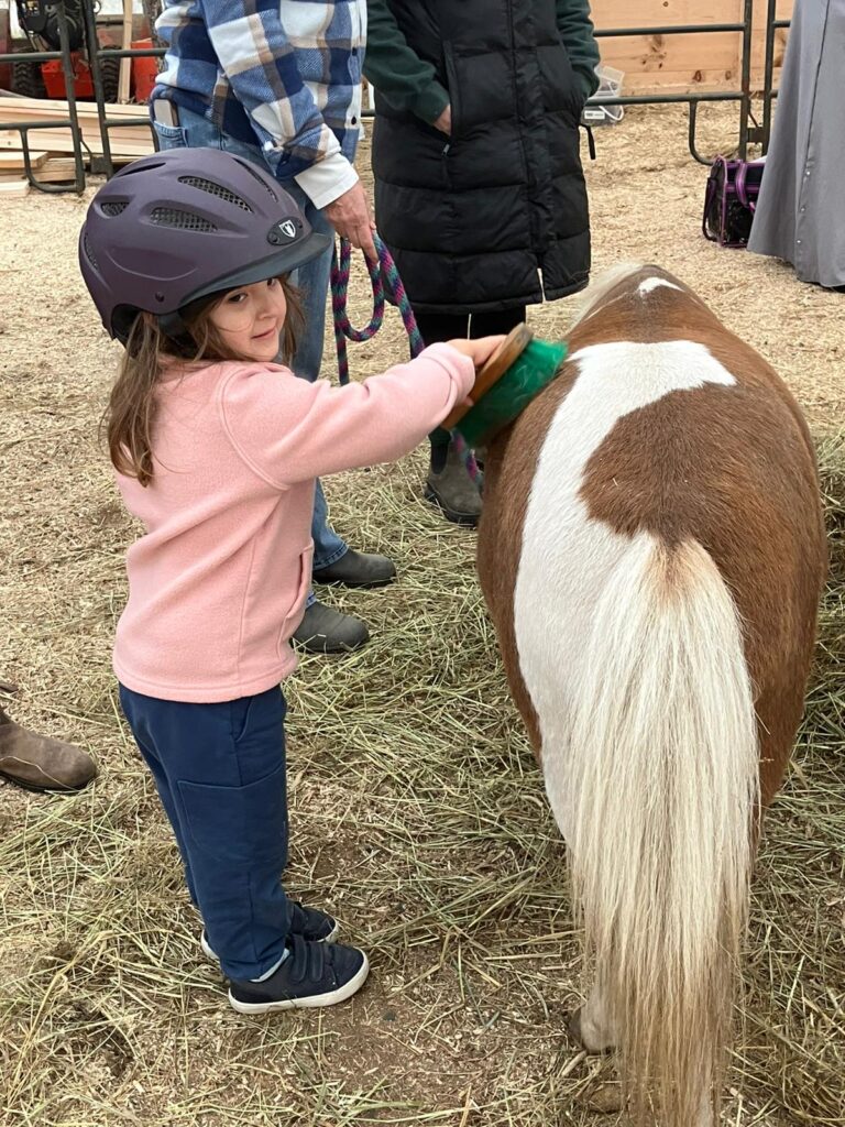 The families had a great time playing blocks, painting pictures of horses, and even got to brush and feed the ponies!