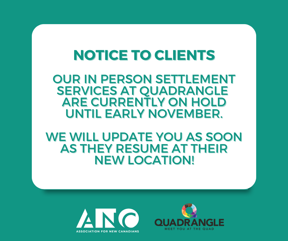 Our in person Settlement Supports at Quadrangle NL at 330 Elizabeth Avenue in St. John’s are currently on hold while they move office locations. We will update you as soon as services resume in their new location! Thank you!