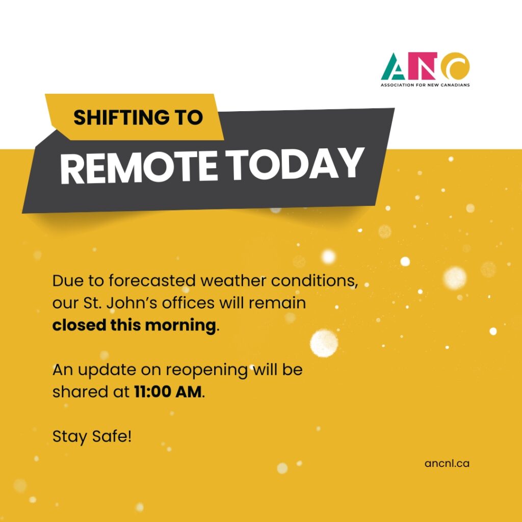 Due to forecasted weather conditions, our St. John’s offices will remain closed this morning.