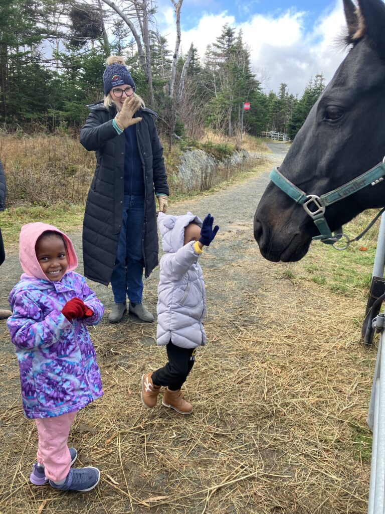 The families had a great time playing, walking outdoors, meeting and interacting with the horses, and even got to feed them!